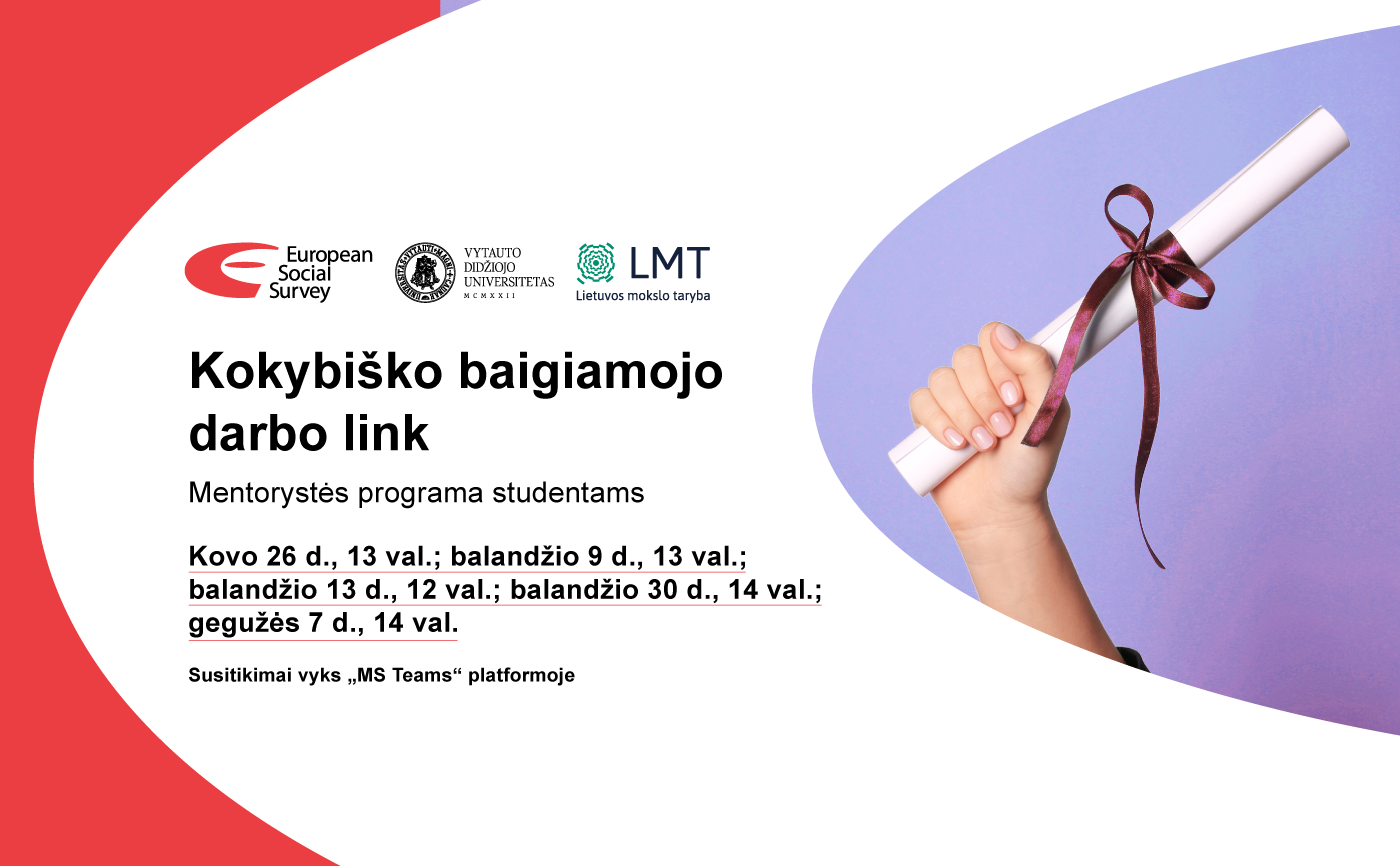 Europos socialinį tyrimą (EST) įgyvendinanti VDU mokslininkų komanda kviečia įvairių krypčių socialinių bei humanitarinių mokslų pirmos, antros ir trečios pakopos studentus dalyvauti mentorystės programoje „Kokybiško baigiamojo darbo link“.