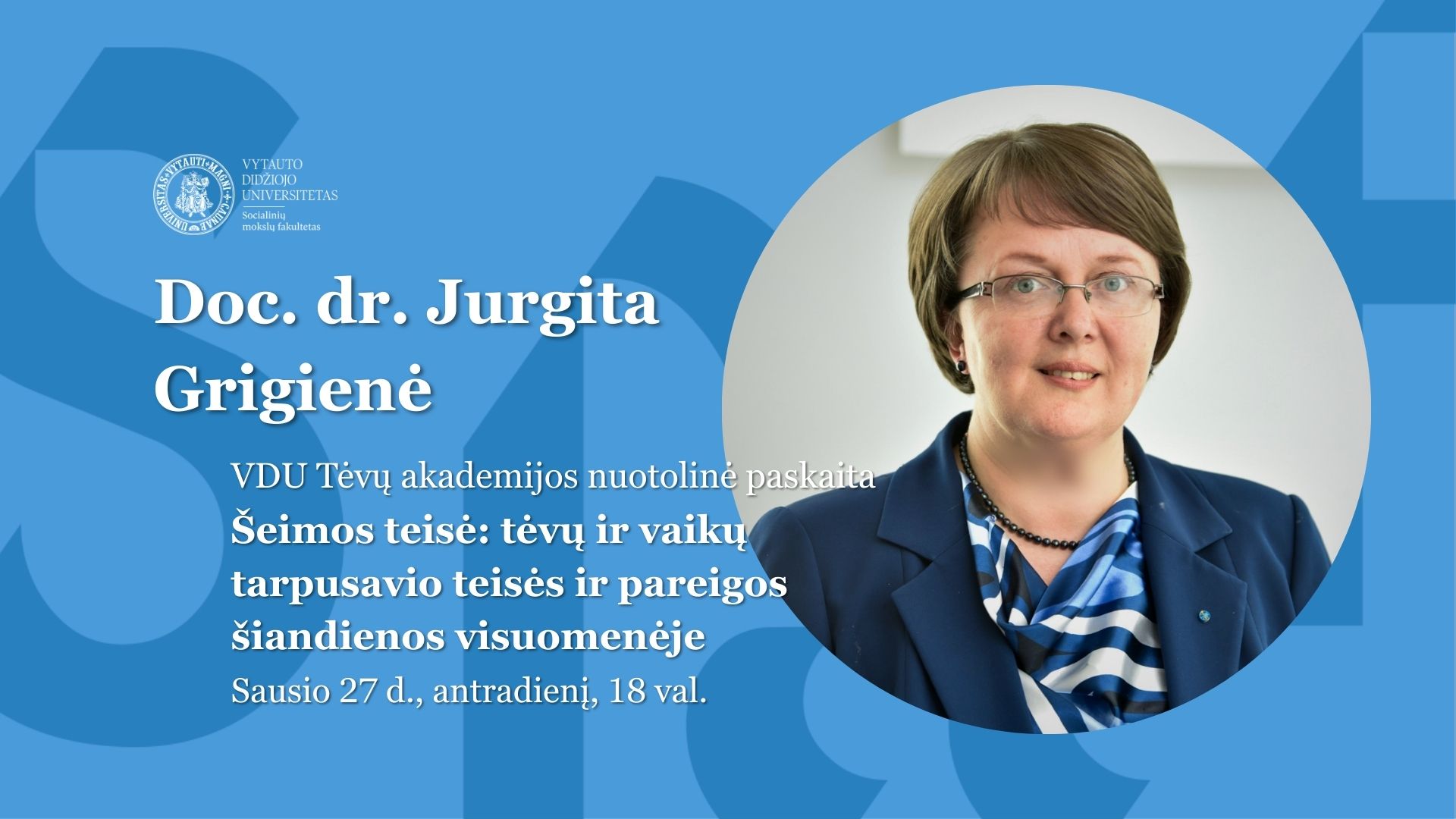 2026 m. sausio 27 d., antradienį, 18 val. kviečiame į VDU Tėvų akademijos nuotolinę paskaitą „Šeimos teisė: tėvų ir vaikų tarpusavio teisės ir pareigos šiandienos visuomenėje“